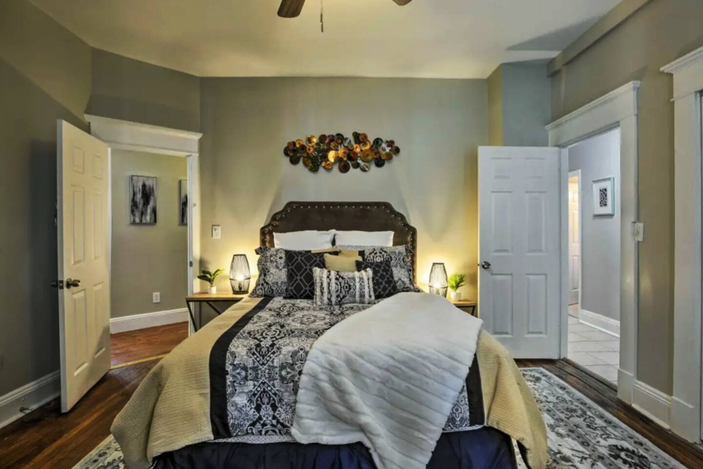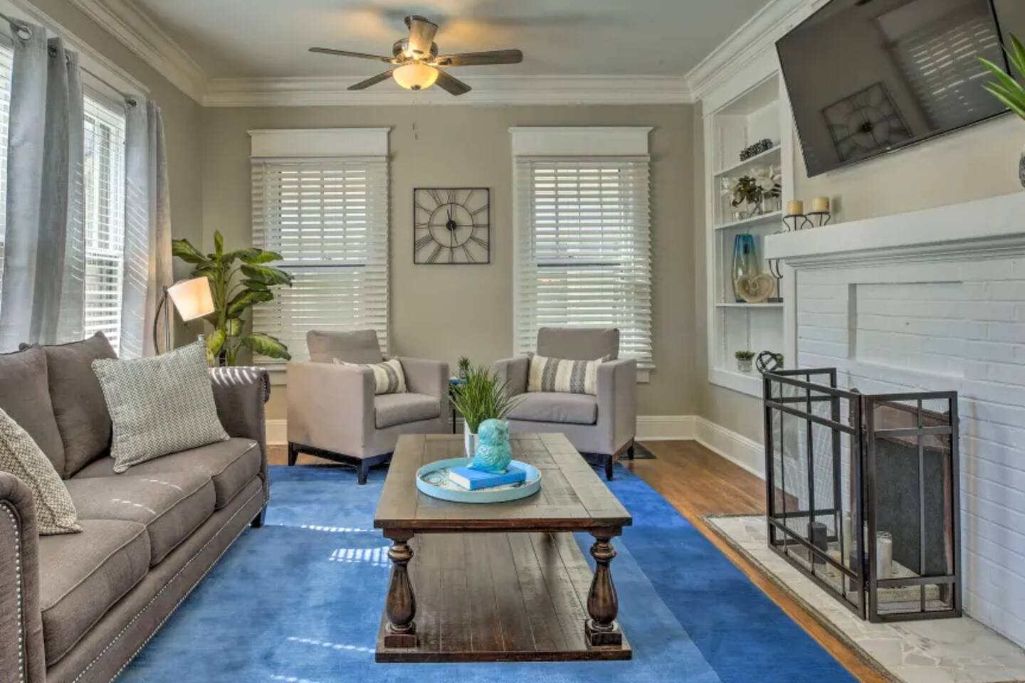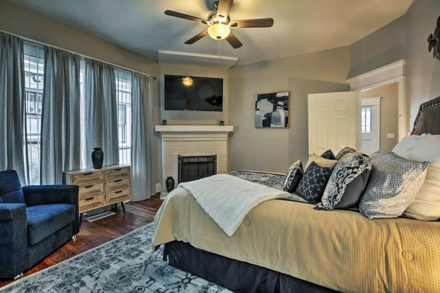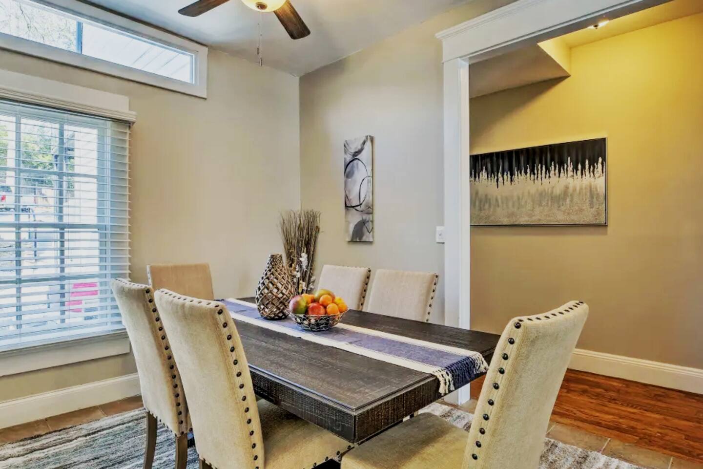 This apartment is a standalone 2-bedroom, 2-bath unit with a private entrance on the first level. A separate 3-bedroom, 2-bath unit is located on the second floor. Guests can rent both units together, transforming the property into a spacious 5-bedroom, 4-bathroom home. If you're interested in booking the entire home, please ask the host for the listing details. This is a highly sought-after area of the city, with the Botanical Garden and Historic Piedmont Park just across the street. It’s worth noting that throughout Atlanta, drivers with modified cars are common, and their sounds can be heard in various upscale neighborhoods. It's a normal part of the Atlanta experience. In addition, since this is the first-level unit and in a historic Atlanta home, you may hear guests walking in the second-floor apartment. Please consider this when deciding to book if you are sensitive to sounds. The host may conduct a random identity verification to protect both the host and guest from identity theft and illegal activities. If selected, you’ll receive a link to our portal. There is no cost to you, and the process takes less than five minutes, so please complete it as soon as possible when requested before your arrival. If using the grill, charcoal, lighter fluid, and a fire starter are located in the first cabinet in the kitchen closest to the back door. Please leave the grill like you found it - clean and without leftover food on the grill. The grill must be left free of debris, or burned on food or a $25 cleaning fee will be billed to the guest. Games, puzzles, books and children's toys are located in the bench at the top of the stairs against the banister. In the master bedroom, there is a mounted desk/workspace and office chair. You can either leave the desk down or put it away when you're not using it. For any guest booking with an initial duration of less than one month, if the guest wishes to extend their stay beyond one month, the Host requires the creation of a new booking rather than altering the existing reservation. Each subsequent monthly extension will also require a new booking. Guests extending their stay beyond one month must also schedule a housekeeping visit within the first week of each new monthly booking which is included in their new reservation. For initial bookings exceeding 35 nights, a mid-stay cleaning fee will be applied and collected through the platform resolution center monthly. This is necessary to maintain the property in the advertised condition. The mid-term cleaning includes housekeeping for all the bedrooms, bathrooms, kitchen, and living room. Host-provided color linens are the guests' responsibility to launder but our team will make the beds if the linens have been washed before our housekeeping team's arrival. The cleaning can be scheduled at your convenience, and your presence is not required for it to take place. Please pull the front and back doors firmly to close.