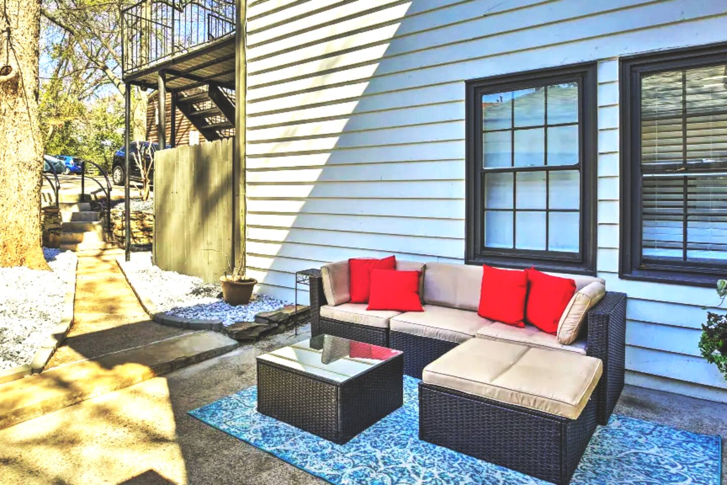 - 2 Spacious Bedrooms: A plush queen-sized bed ensures restful nights. - 2 Full Bathrooms: Stocked with premium towels and complimentary toiletries. - Modern Kitchen: Fully equipped with stainless steel appliances, cookware, and essentials for dining in. - Living Room: Relax on the cozy sofa while streaming your favorite shows on the 55-inch Roku TV. - Private Entrance: Enjoy peace and privacy with your own secure entryway from the front or the rear of the apartment. - Outdoor Patio: A charming space to sip coffee or unwind after exploring. Key Amenities - Free high-speed Wi-Fi for work or streaming. - Central heating and air conditioning for your comfort year-round. - On-site parking for your convenience. - Washer and dryer for longer stays. - Parking for 2 cars. Prime Location Steps away from Piedmont Park, the Botanical Gardens, The Beltline, The High Museum, the Center for Puppetry of the Arts, and Atlantic Station. The Georgia Aquarium, World of Coca-Cola, Centennial Park, CNN Center, and the Martin Luther King Center are all just an Uber ride away. This unit is also a few miles away from Georgia State University and Georgia Tech. Indulge in nearby restaurants, charming cafés, and boutique shopping. You’re also minutes from Midtown’s nightlife, cultural landmarks like the High Museum of Art, and easy access to public transportation for exploring the city.
